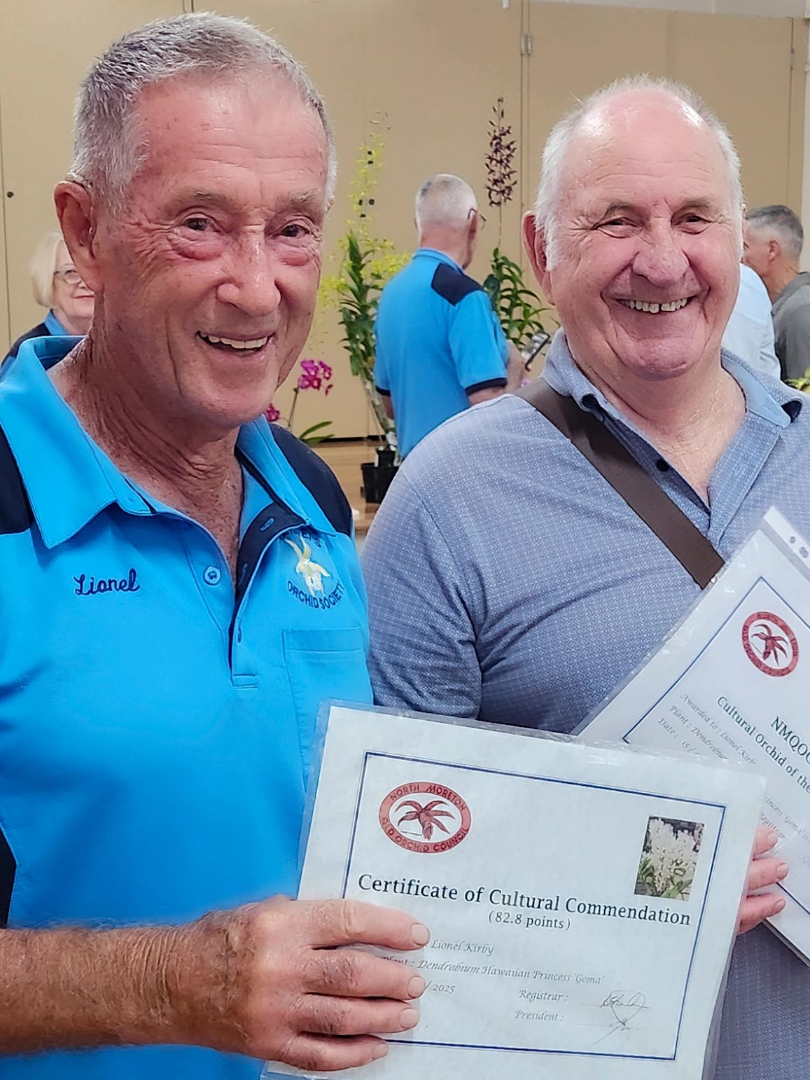 These awards are both for Lionel's orchid Dendrobium Hawaiian Princess ' Goma'.